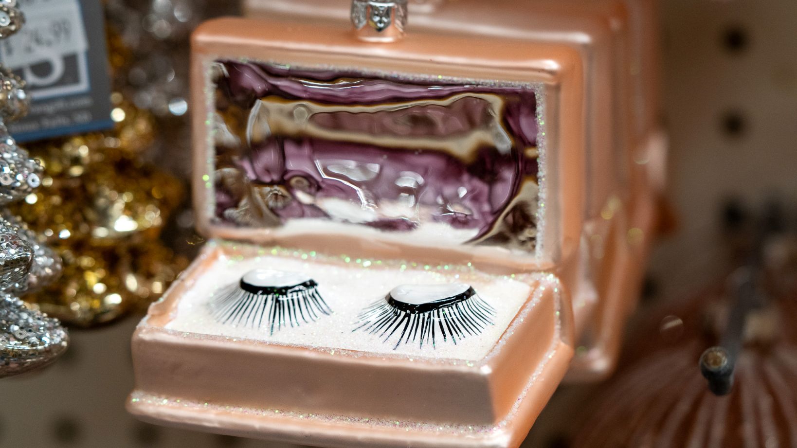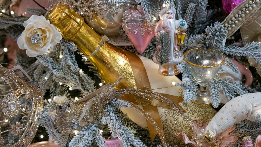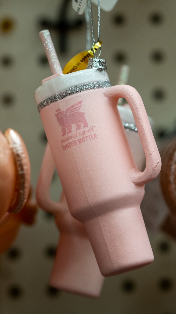 What was two disctinct themes, Barbie Girl & Mrs. Claus’ Bakeshop, has now been transformed into “Pretty in Pink”! This theme has far & away the most unique collection of must-have ornaments: cutesy pink tumblers, pink bubble baths, pink gemstone Eiffel tower, mini bottles of champagne and the glass to pour it in… the more you look the more you’re dreaming of a bright pink Christmas!