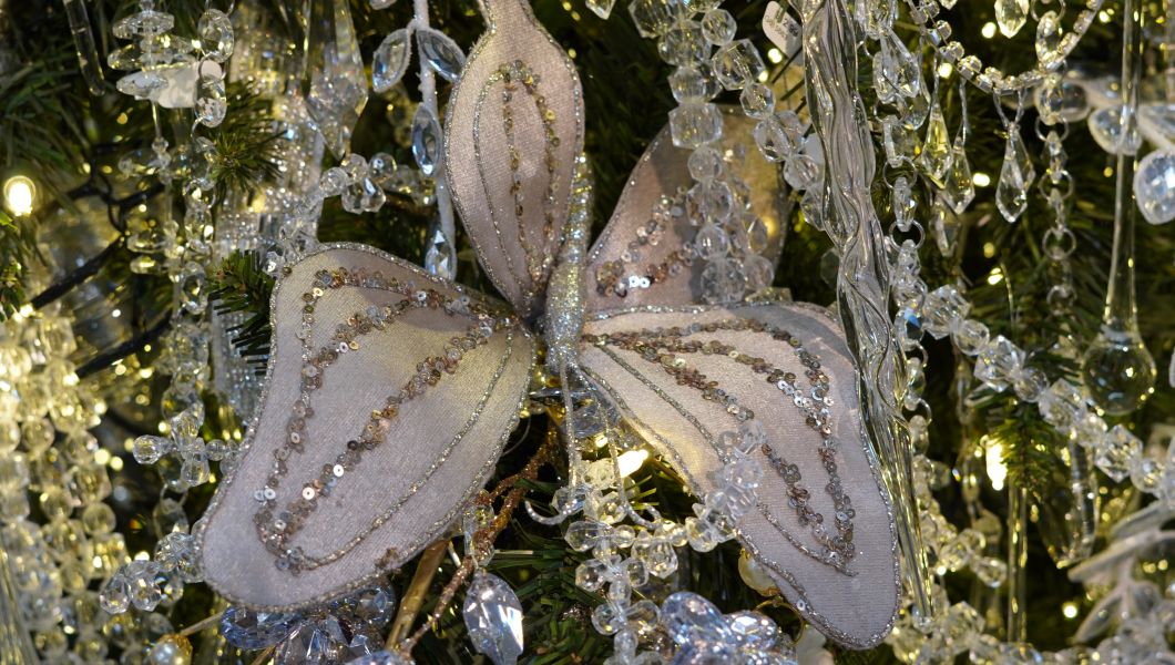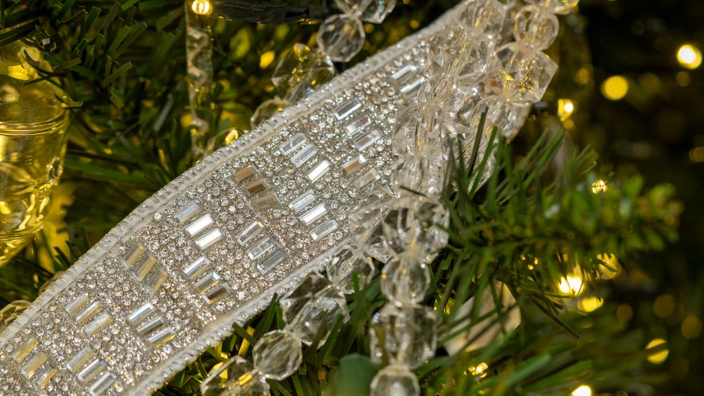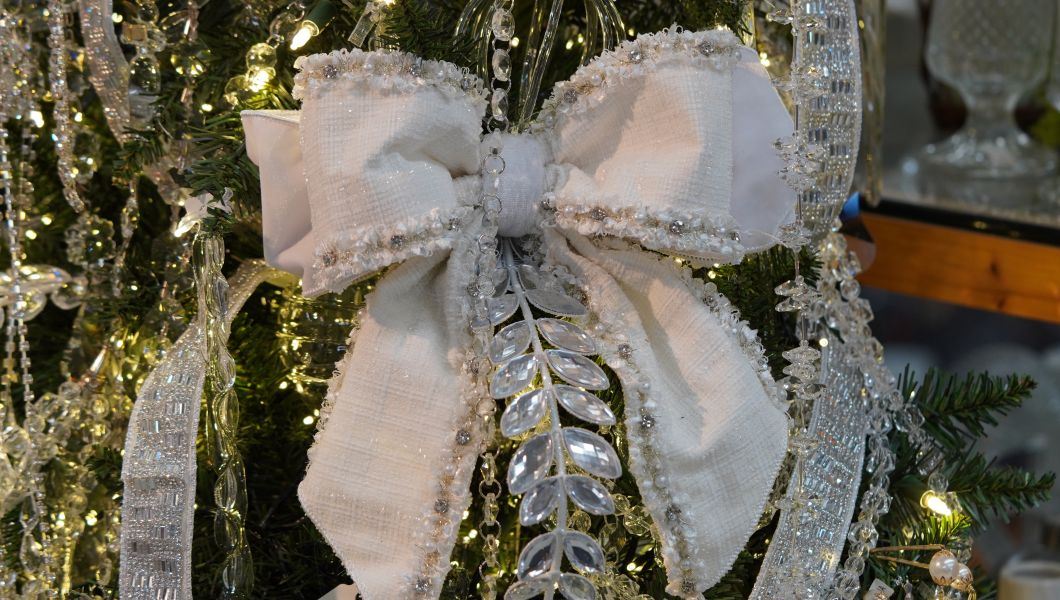 When themes become too busy, with too many colors & textures, with too many thoughts and not enough focus, it can be challenging to keep that cohesion you started with. “Diamond Escape” presented the exact opposite challenge, and I believe our team hit a home run! Calling this a “monotheme” just doesn’t do this stunning tree justice: From a palette of diamond to silver ornaments, bows, streamers, and beautifully subdued picks, this may end up being the darkhorse favorite of 2025!