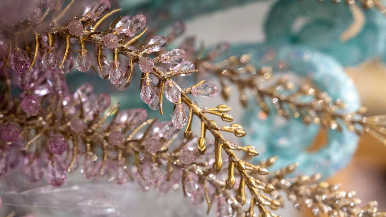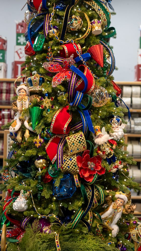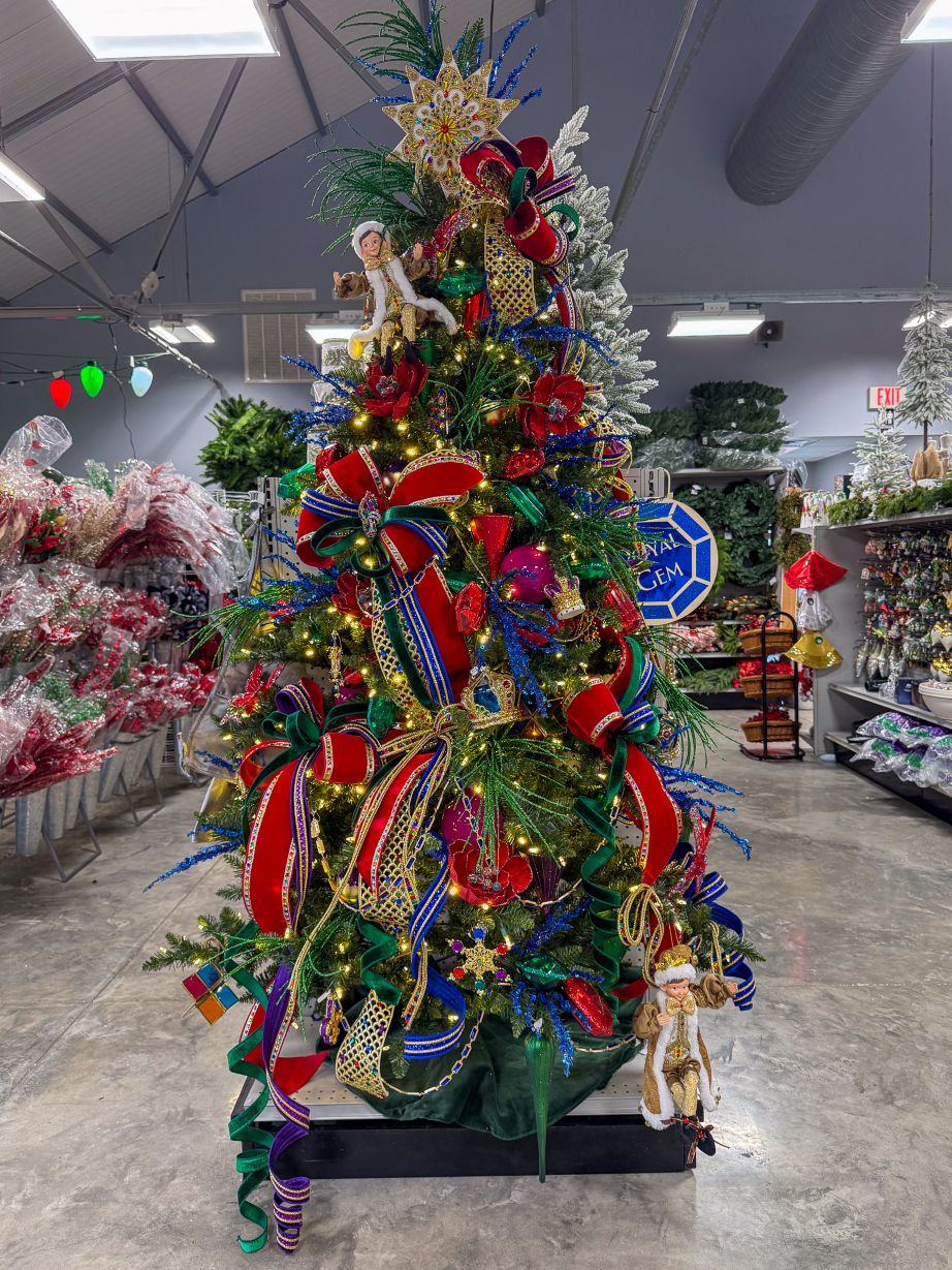 A Christmas tree fit for Royalty! “Royal Gem” may just be our flashiest theme of the year. Our design team didn’t hold any punches when asking for more gems, more sparkle, more pop and more vibrant color! While there is already a massive assortment of decor picked just for this theme, I’ve also noticed lots of items that could be subbed in for your preferences in color and focal point. The gemstone garland and ribbons are definitely getting used again before next Christmas!