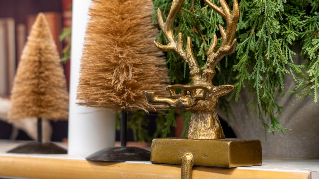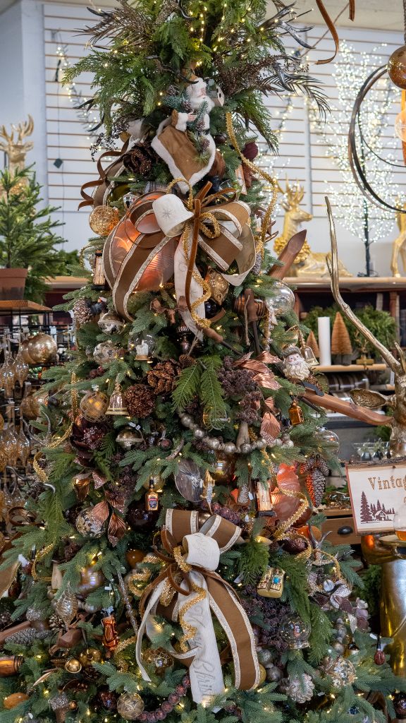 This this was a tough one to name… internally it ranged from “leather tree”, “masculine tree” “copper” and several others, but the word Cottage really tied this outdoorsy theme together! There’s an endless array of wildlife – including animal, plant, and fungi – peppered throughout the tree and surrounding displays. Think book-nook, think hunting cabin, think fresh cedar scents and ornate metallic accents shimmering from the natural light of a camp fire.