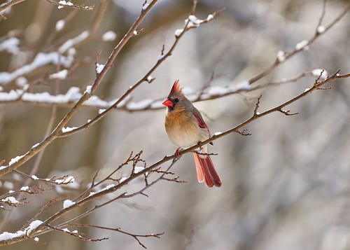 While often characterized as ‘drab,’ the female Cardinal’s plumage is no less beautiful.