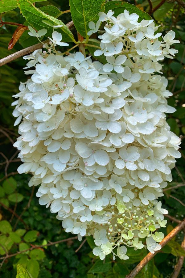 Panicle hydrangeas produce even larger, football-shaped blooms with an off-white and green hue.