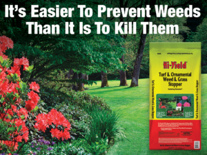 If you have not already done so, apply a pre-emerge chemical, such as Hi-Yield’s “Turf and Ornamental Grass Stopper.” If the summer weeds in your lawn go to seed, they will drop all those seeds in the lawn, they will germinate and then produce new weeds. But applying “Turf and Ornamental Grass Stopper” two to three times a year can help you to achieve up to 80% control of weeds without having to spray an herbicide. Consistent application is crucial. You must keep up with the applications annually to achieve this type of control. (Want to learn more about all of our weed-control products? Click the link, here!)